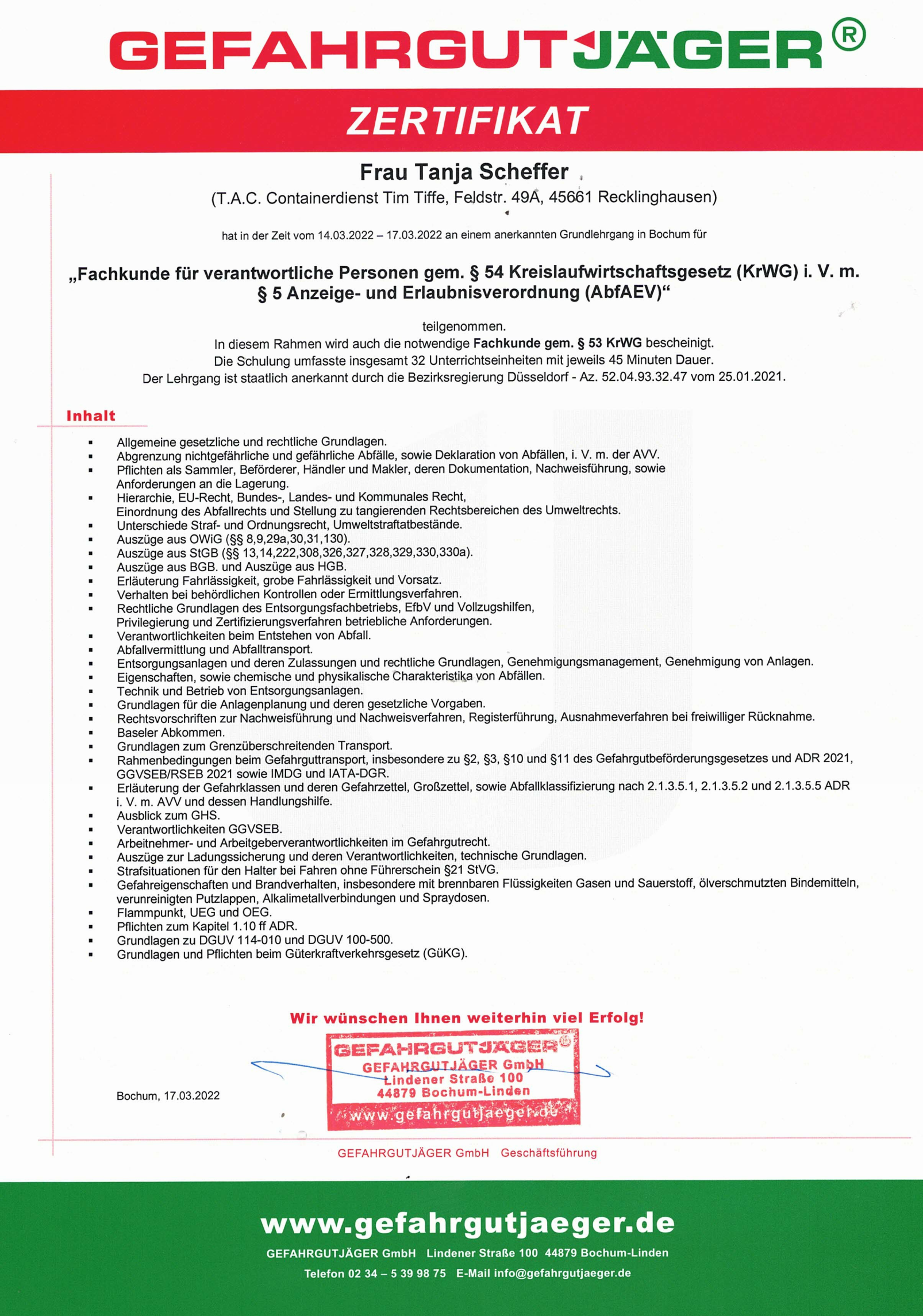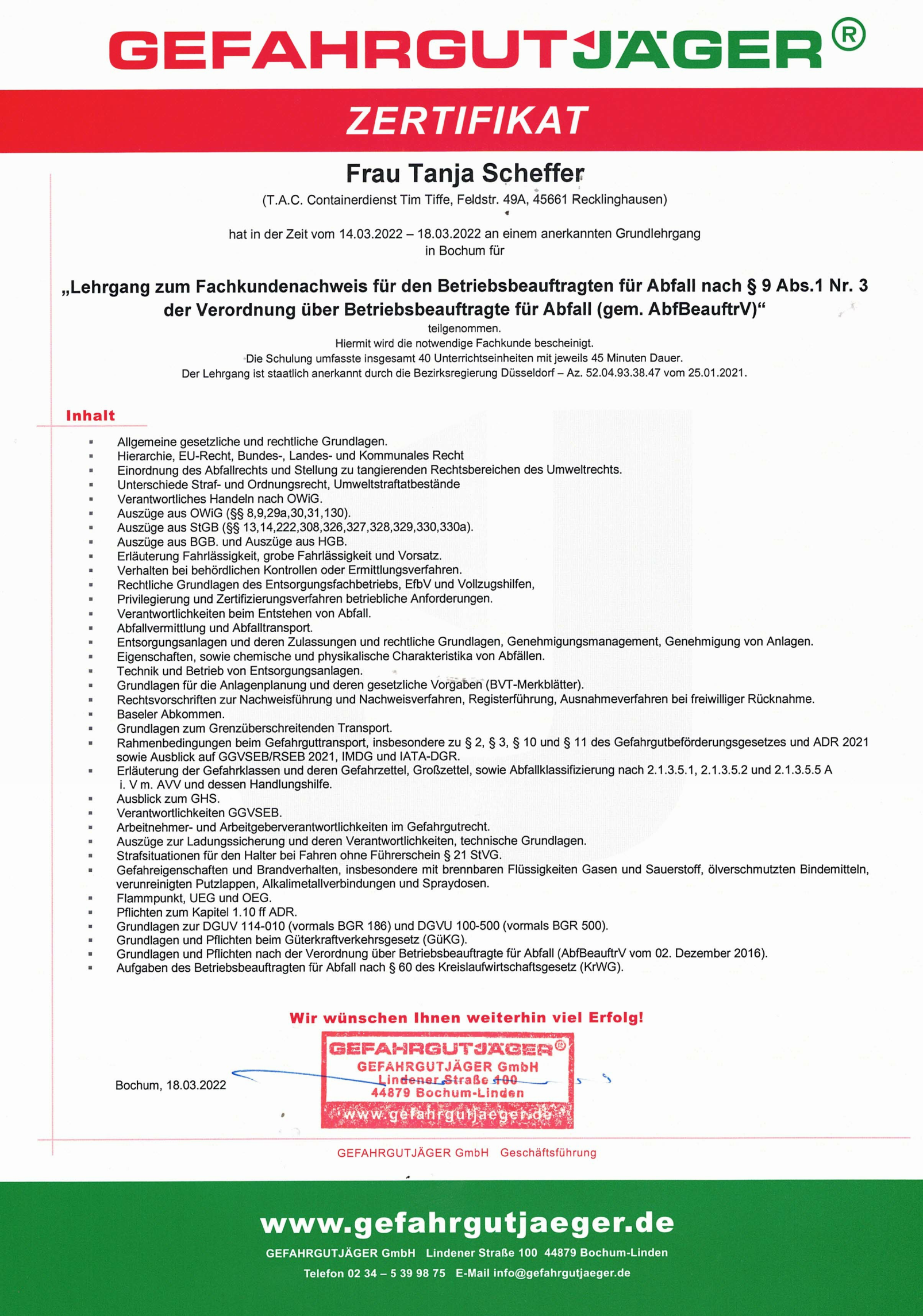 einen von uns gestellten Container zu werfen! Die Sortierung und fachliche